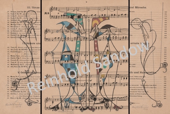 Triptychon 9 / Blei-Farbstift-PittPen / Notenblatt / 42x30 cm |